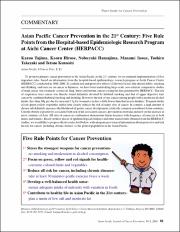 Asian Pacific Cancer Prevention in the 21st Century: Five Rule Points from the Hospital-based EpidemiologicResearch Program at Aichi Cancer Center (HERPACC)