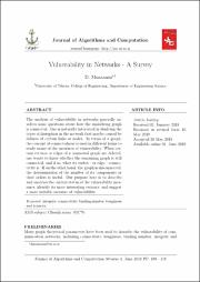 The analysis of vulnerability in networks generally involves some questionsabout how the underlying graph is connected. One is naturally interestedin studying the types of disruption in the network that maybe causedby failures of certain links or nodes. In terms of a graph, the concept ofconnectedness is used in different forms to study many of the measuresof vulnerability. When certain vertices or edges of a connected graphare deleted, one wants to know whether the remaining graph is stillconnected, and if so, what its vertex - or edge - connectivity is. If on theother hand, the graph is disconnected, the determination of the number ofits components or their orders is useful. Our purpose here is to describeand analyses the current status of the vulnerability measures, identify itsmore interesting variants, and suggest a most suitable measure ofvulnerability.