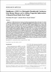 Significance of HCG to Distinguish Parathyroid Carcinoma from Benign Disease and in Adding Prognostic Information: A Hospital Based Study from Nepal