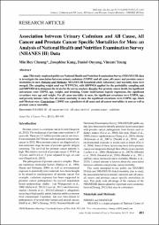 Aim: This study employed public use National Health and Nutrition Examination Survey (NHANES III) datato investigate the association between urinary cadmium (UDPSI) and all cause, all cancer and prostate cancermortalities in men. Patients and Methods: NHANES III household adult, laboratory and mortality data weremerged. The sampling weight used was WTPFEX6, with SDPPSU6 applied for the probability sampling unitand SDPSTRA6 to designate the strata for the survey analysis. Results: For prostate cancer death, the significantunivariates were UDPSI, age, weight, and drinking. Under multivariate logistic regression, the significantcovariates were age and weight. For all cause mortality in men, the significant covariates were UDPSI, age,and poverty income ratio. For all cancer mortality in men, the significant covariates were UDPSI, age, blackand Mexican race. Conclusions: UDPSI was a predictor of all cause and all cancer mortalities in men as well asprostate cancer mortality.