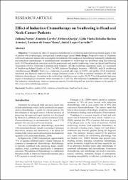 Objective: To evaluate the effect of induction chemotherapy on swallowing and swallowing-related quality of lifeof patients with oropharyngeal, laryngeal and hypopharyngeal cancer. Study design: Prospective study of 33 patientswith locally advanced tumors who were eligible for treatment with neoadjuvant chemotherapy followed by radiotherapyand concurrent chemotherapy. A multidimensional assessment of swallowing was performed using the followingtools: (1) Clinical analysis, numerical scale for general pain and painful swallowing, American Speech and HearingAssociation (ASHA) Functional Communication Measures (FCM) swallowing assessment scales, (2) assessmentof Swallowing-Related Quality of Life (The MD Anderson Dysphagia Inventory - MDADI), and (3) swallowingvideofluoroscopy. Results: There was a reduction in general pain scale (p=0.021), and quality of life (emotional,functional and physical) improved from average limitation (score of 61-80) to minimal limitation (81-100) afterinduction chemotherapy. According to the swallowing videofluoroscopy results, 26 (78.7%) of the patients had somedegree of dysphagia pre-treatment, which decreased to 21 (63.6%) after induction. Conclusion: Our results suggestthat induction chemotherapy improves numerous aspects of swallowing and has a positive impact on the quality oflife of pre-chemoradiotherapy patients.