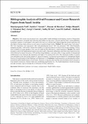 Bibliographic Analysis of Oral Precancer and Cancer Research Papers from Saudi Arabia