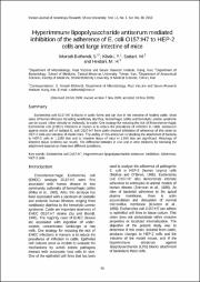 Hyperimmune lipopolysaccharide antiserum mediated inhibition of the adherence of E. coli O157:H7 to HEP-2 cells and large intestine of mice