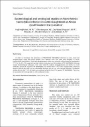 Bacteriological and serological studies on Mannheimia haemolytica infection in cattle slaughtered at Ahvaz (southwestern Iran) abattoir