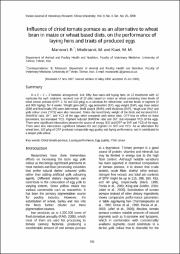Influence of dried tomato pomace as an alternative to wheat bran in maize or wheat based diets, on the performance of laying hens and traits of produced eggs