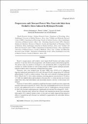 Abstract Reactive oxygen species and oxidative stress impair β-cell function and reduce insulin secretion. It has been shown that progesterone and cilostazol possess antioxidant properties. The present study was aimed to investigate in vitro pretreatment effect of progesterone and cilostazol on insulin secretion as well as their protective effects against hydrogen peroxide-induced oxidative stress in pancreatic isolated islets from mouse. Pancreatic islets were isolated from 84 male NMRI mice (25–30g) by collagenase digestion method and pretreated for 48h with cilostazol (10 μM), progesterone (0.5 µM) and glibenclamide (10 μM) in culture medium. Then islets were exposed to hydrogen peroxide (H2O2. 500 μM) for 2h. Next, culture mediums containing glucose concentration of 2.8 mM or 16.7 mM were added to them and incubated in this status for 1h. At the end, the rate of insulin out¬put from islets, lipid peroxidation and antioxidant enzymes activities in islet tissues were assayed. Exposure of islets to H2O2, resulted in a significant decrease in insulin secretion, superoxide dismutase and catalase activities (P