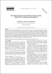 در این مقاله انتشار امواج غیر خطی کوانتومی سولیتاری یون- آکوستیک غباری در پلاسمای کوانتومی غیر مغناطیده که از الکترونها ویونهای بدون اینرسی کوانتومی، یونهای سرد کلاسیکی و دانههای غبار منفی ساکن تشکیل شده و با استفاده از روش اختلال کاهشی، معادله کورت وگ د وریس در آن به دست آمده، مورد مطالعه قرار گرفته است. از معادلات هیدرو دینامیک کوانتومی که تصحیحات آمار کوانتومی و پراکندگی کوانتومی در آن لحاظ شده استفاده شده است. نشان داده شده که بسته به مقدار بحرانی چگالی ذرات غبار، که خود وابسته به پارامتر کوانتومی است، امکان انتشار هر دو نوع سالیتون فشرده و رقیق در پلاسمای ذکر شده وجود دارد. به علاوه، دامنه و پهنای هر دو نوع سالیتون با افزایش غلظت ذرات غبار افزایش می یابد. همچنین با افزایش پارامتر پراکندگی کوانتومی، پهنای سالیتون فشرده کاهش و پهنای سالیتون رقیق افزایش مییابد و دامنه هر دو نوع سالیتون مستقل از پارامتر کوانتومی است. نتایج این مقاله میتواند در تحقیقات مربوط به پلاسماهای کیهانی و همچنین وسایل الکترونیکی در ابعاد میکرو و نانو مفید باشد
