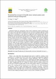 Optimized nitrogen (N) management reduces total N application without sacrificing cropyield. However, the underlining mechanisms have not been well investigated, especially lackingthe evidence from roots. Here we performed a two-year field experiment with maize grownunder zero-N, conventional N and optimized N applications and examined grain yield, N,phosphorous (P) and potassium (K) uptake and root length in diverse diameter classes. Resultsshowed that both conventional N and optimized N managements significantly increased plantnutrient contents and grain yield compared with zero-N treatment, but no obvious differencewas observed between the two N-fertilized treatments. Notably, the response of differentnutrients to N application was not synchronous temporally over the growth period, followingthe order of N first, P second and K last. Though N application generally had minor impact ontotal root length and root biomass, optimized N regime significantly increased fine root(diameter ≤ 0.2 mm) length compared with conventional N at the eighth leaf emerged stage. Thestimulated fine root growth under optimized N management is beneficial for adequate N uptakeduring the key growth stage, which determines subsequent PK acquisition and final crop yield.Our findings highlight the importance of fine roots in maize NPK uptake and a betterunderstanding of the response of fine roots to changes in N availability may therefore be criticalfor optimizing N input in maize farming system