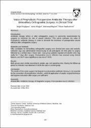 Introduction: Antibiotic therapy before or after orthognathic surgery is commonly recommended by surgeons to minimize the risk of wound infection. This article evaluates the value of Prophylactic antibiotic therapy in order to diminish the incidence of postoperative wound infection after orthognathic surgery. Materials and Methods: Fifty candidates for bimaxillary orthognathic surgery were divided into cases and controls. Cefazolin (1g) was administered intravenously to all participants 30 mins prior to surgery followed by a similar dose 4 hours later. Case-group patients ingested amoxicillin (500 mg) orally for 7 days after surgery. Postoperative wound infection was assessed using clinical features, and the P-value significance was set at P Results: Both groups were similar according to gender, age, and operating time. During the follow-up period no infection was observed in either the case or control group. Conclusion: The results of this study suggest that long-term postoperative antibiotic therapy is not essential for the prevention of postoperative infection, and that application of aseptic surgical technique and hygiene instruction after surgery are sufficient.