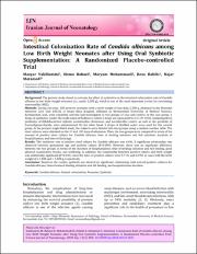 Background: The present study aimed to evaluate the effect of synbiotics on the intestinal colonization rate of Candida albicans in low birth weight neonates (i.e., under 2,500 g), which is one of the most important events for necrotizing enterocolitis (NEC).Methods: During one year, 106 preterm neonates with a birth weight of less than 2,500 g, admitted to the Neonatal Intensive Care Unit (NICU) of Imam Reza Hospital, affiliated to Kermanshah University of Medical Sciences, Kermanshah, Iran, were randomly selected and investigated in two groups of case and control. In the case group, 5 drops of synbiotics (under the trade name of Pedilact in which 5 drops are equivalent to 2.5×108 CFU), containing three probiotics of Bifidobacterium infantis, Lactobacillus rhamnosus, and Lactobacillus reuteri, as well as the prebiotic of fructooligosaccharide, were administered. On the other hand, 5 drops of distilled water were used for the control group. In the present single-blind study, the subjects were divided into two groups using a random number table. The stool cultures were obtained on the 1st and 10th days of admission. Then, the two groups were compared in terms of the amount of positive stool culture for Candida albicans, time of feeding initiation and full nutrition, duration of hospitalization, and time of discharge.Results: The incidence rate of positive stool culture for Candida albicans was 6.6%. A significant relationship was observed between gestational age and positive culture (P=0.009). However, there was no significant difference between the two groups in terms of the duration of hospitalization, time of feeding initiation and full feeding, good physical examination results, and wellbeing. In addition, the relationship between positive culture and birth weight was statistically significant (P=0.045) since the rates of positive culture were 57.1% and 42.9% in cases with the birth weight of ≤ 1,500 and > 1,500 g, respectively. 1,500 g, respectively.Conclusion: Based on the results, synbiotic use showed no significant relationship with enteral positive cultures for Candida albicans, time of enteral feeding initiation and full feeding, and hospitalization duration.