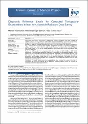 Introduction: International Commission on Radiological Protection introduced three basic principles of radiation protection, namely justification, optimization, and dose limit. Medical exposure has no dose limits, and generally, diagnostic reference levels are used as a tool for optimization of patient protection. Material and Methods: Dosimetry was performed on 20 CT scanners located in 14 cities in 12 provinces of Iran. A calibrated pencil-shaped ionization chamber, standard head and body CT dosimetry phantoms and a radiation monitor were used to determine and calculate Computed Tomography Dose Index (CTDI) and Dose Length Product (DLP). The DLP-based estimates of effective dose were derived using effective dose conversion coefficients. Results: The nCTDIw values for head phantoms fell within the range of 22.05-168.38 and 43.77-426.69 µGy/mAs for 5 and 10mm slice thicknesses, respectively. These values for body phantom were 4.65-146.39 and 9.43-308.92 µGy/mAs for 5 and 10mm slice thicknesses, respectively. The third quartile of CTDIvol and DLP values for head CT examinations were 49.85 mGy and 1161.00 mGy-cm, respectively. The body CT examinations had the values of 8.89 mGy and 370.97 mGy-cm, respectively. The findings of this study revealed that the above-mentioned values can be considered as national diagnostic reference levels for head and body CT examinations in Iran. Conclusion: The results of the current study suggested that there is a need to re-assess DRLs for CT examinations at regular time intervals by the appropriate regulatory authority which can improve the continuous performance of CT scanners in Iran.