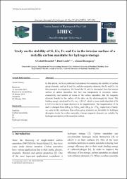 In this article, we have performed calculations for studying the stability of the carbon group elements such as Si and Ge and also the magnetic elements like Fe and Co via first principle investigations. We found that Si and Ge decoupled from the interior surface of carbon nanotubes, this fact was independent in curvature, radius, conductivity and numbers of atoms in the carbon nanotubes. But the magnetic elements bonded to the surface of the tube via electronegativity factor. The binding energy calculated for Co is -3.82 eV which is more stable than that of Fe (-2.65 eV) due to decrease more in its magnetization. The magnetization of Fe and Co changed from 4.00 μ_B to 3.40 μ_B and 3.00 μ_B to 1.75μ_B respectively. Finally, we came to conclusion that carbon group elements are favorable for hydrogen absorption inside the carbon nanotube whereas the magnetic elements are suitable for hydrogen adsorption.