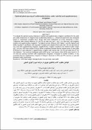 To evaluate the optimal sowing distances in rainfed and supplementary irrigation conditions for the yield and yield components of Dragon's head (Lallemantia iberica L.), a factorial experiment was conducted based on randomized complete block design with three replications at Urmia University in 2014. Treatments were sowing distances (15 and 30 cm inter-row and 1 and 2 cm intra-row) and irrigation (rainfed and supplementary irrigation). The highest number of leaves (105 Nplant-1) and the highest Leaf (1961 mg plant-1) and flower (242 mg plant-1) weight were obtained from wide inter (30 cm) and intra (2 cm) rows with supplementary irrigation. Supplementary irrigation resulted in the maximum plant height (43.7 cm) and 1000-Seed weight (4.96 g). Means comparison showed that the highest values of seed yield (2730 kg ha-1) were obtained in supplementary irrigation with narrow inter (15 cm) and wide intra (2 cm) row distances. The maximum biological yield (4935 kg ha-1) and harvest index (52%) were found in 15 cm inter-row spacing treatment with supplementary irrigation. Compared to rainfed condition, It was concluded that one supplementary irrigation of Dragon's head led to 130% and 99% increase in seed and biological yield, respectively.