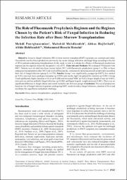 Objective: Invasive fungal infections (IFI) in bone marrow transplant (BMT) recipients are common and lethal.Fluconazole was the choice prophylaxis previously, but recent strategy utilization antifungal drugs according to the riskof IFI in patients undergoing transplantation. In this study we aim to evaluate the efficacy of fluconazole prophylaxisregimen and the regimes chosen by the patient's risk of IFI. Materials and Methods: We evaluated 376 patients withBMT. Patients were divided into those treated before 2012 with fluconazole prophylaxis (group I, n=206) or thoseundergone transplantation after 2012 and received fluconazole, voriconazole and posaconazole prophylaxis accordingtheir risk of fungal infection (group II, n=170). Results: Group I was significantly younger (p=0.007), less smoker(p=0.01), received more autologus transplant (p=0.001) and mostly high risk patient for infection (pI had significantly higher duration of fever (p=0.004) and increased WBC (p=0.02), longer length of stay (p=0.001),more proven and less probable fungal infections (p=0.008) and higher hepatic complications (p=0.003). There was nosignificant difference in fungal related and overall mortality rate between groups. Conclusion: The use of prophylaxisbased on risk of fungal infection in patients undergoing BMT results in reduce fungal infections, duration of fever andaccelerate the engraftment and patient discharge.