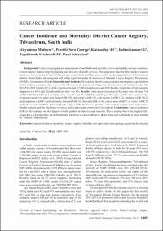 Cancer Incidence and Mortality: District Cancer Registry, Trivandrum, South India