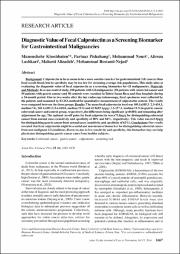 Background: Calprotectin in feces seems to be a more sensitive marker for gastrointestinal (GI) cancers thanfecal occult blood, but its specificity may be too low for screening average risk populations. This study aims atevaluating the diagnostic value of fecal calprotectin as a screening biomarker for GI malignancies. Materialsand Methods: In a case-control study, 100 patients with GI malignancies (50 patients with colorectal cancer and50 patients with gastric cancer) and 50 controls were recruited in Tabriz Imam Reza and Sina hospitals duringa 24-month period. One to two weeks after the last endoscopy/colonoscopy, fecal specimens were collected bythe patients and examined by ELISA method for quantitative measurement of calprotectin content. The resultswere compared between the three groups. Results: The mean fecal calprotectin level was 109.1±105.3 (2.3-454.3,median:74), 241.1±205.2 (3.4-610.0, median:19.3) and 45.9±55.1μg/g (1.3-257.1, median:19.3) in gastric cancer,colorectal cancer and control group, respectively, the differences being significant (pConclusions: Our resultsrevealed that fecal calprotectin might be a useful and non-invasive biomarker for distinguishing colorectal cancerfrom non-malignant GI conditions. However, due to low sensitivity and specificity, this biomarker may not helpphysicians distinguishing gastric cancer cases from healthy subjects.