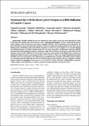 Background: Multiple etiologic factors are suspected to cause gastric cancer, the most important of whichis infection with virulent types of Helicobacter pylori. Materials and Methods: We have compared 102 gastriccancer patients with 122 non-ulcer, non-cancer dyspeptic patients. Gastric specimens were evaluated for H.pylori infection by tissue-based detection methods. Patient sera underwent antigen-specific ELISA and westernblotting using a Helicoblot 2.1 kit and antibody responses to various H. pylori antigens were assessed. Results:The absolute majority (97-100%) of both groups were H. pylori seropositive. Multivariate regression analysisdemonstrated serum antibodies to the low molecular weight 35kDa protein to be protective and reduce the riskof gastric cancer by 60% (OR:0.4; 95%CI:0.1-0.9). Conversely, seroreactivity to the 89kDa (VacA) protein wassignificantly higher in gastric cancer patients (OR:2.7; 95%CI:1.0-7.1). There was a highly significant association(pConclusions: Seroreactivity to H. pylori low (35kDa) and high (116kDa/89kDa) molecularweight antigens were respectively revealed as protective and risk indicators for gastric cancer.