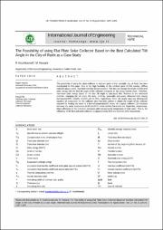 The Possibility of using Flat Plate Solar Collector Based on the Best Calculated Tilt Angle in the City of Rasht as a Case Study (TECHNICAL NOTE)
