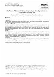 A significant decrease in antioxidant enzymes activities and increased malondialdehyde (MDA) level were observed in diabetic rats (P= 0.004). In response to exercise, antioxidant enzymes activities increased (P= 0.004). In contrast, MDA level decreased in diabetic rats (P= 0.004). Induction of diabetes caused an increase of BDNF protein and its mRNA expression. In response to exercise, BDNF protein and its mRNA expression reduced in hippocampus of diabetic rats.