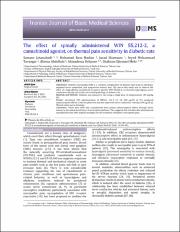 Objective(s):Diabetic neuropathy (DN) is a common complication of diabetes that leads to allodynia, impaired nerve conduction, and progressive sensory loss. The aim of this study was to observe the effect of a high-affinity cannabinoid receptors agonist, WIN 55,212-2, on thermal hyperalgesia, nerve conduction velocity and sciatic nerve histopathology in diabetic rats.