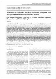 Reproductive Variables and Risk of Breast Malignant and Benign Tumours in Yunnan Province, China