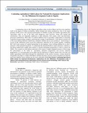A simmering crisis in the Nigerian agriculture today involves labour and the crisis manifests itself in the degree of labour availability, labour demand and labour productivity. One of the major products of this crisis is the increased participation of children in paid, non-familiar agricultural jobs. Agriculture ranks as one of the three most dangerous work activities, along with mining and construction. They are frequently employed as farm labourers, bird scarers, food crop harvesters, processors and hawkers. More than 132 million children,work in agriculture. Child labour is increasing in postharvest processing, transport, marketing and a range of agroindustries. Child labour is maybe one of the most striking indicators identifying vulnerable children and as such pointing to shortcomings in several of the millennium goals as poverty eradication, education for all, gender equality, combating HIV/AIDS and creation of a global partnership for development. Most working children do so after a decision in their parental household. To understand the household labour supply decisions, relations to the labour market and to public interventions is critical in designing programmes in order to achieve the MDGs. The research on child labour represent in this respect a largely untapped resource of knowledge for policymakers in the fields of agriculture, education programmes and poverty reduction programmes. It is recommended in this paper that the legislators in Nigeria should enact laws that will reduce agricultural child labour through the redistribution of the nations resources, women should be integrated in the fight to combat child labour and that alternative income sources should be provided for rural poor families whose children are the most vulnerable. [ G.N, Ben-Chendo. Combating Agricultural Child Labour for National Development: Implications for the Millenium Development Goals in Nigeria. International Journal of Agricultural Science, Research and Technology, 2011; 1(2):61-66].