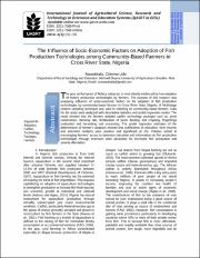 The Influence of Socio-Economic Factors on Adoption of Fish Production Technologies among Community-Based Farmers in Cross River State, Nigeria