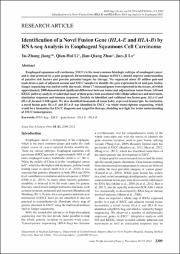 Esophageal squamous cell carcinoma (ESCC) is the most common histologic subtype of esophageal cancerand is characterized by a poor prognosis. Determining gene changes in ESCCs should improve understandingof putative risk factors and provide potential targets for therapy. We sequenced about 55 million pair-endreads from a pair of adjacent normal and ESCC samples to identify the gene expression level and gene fusion.Sanger sequencing was used to verify the result. About 17 thousand genes were expressed in the tissues, of whichapproximately 2400 demonstrated significant differences between tumor and adjacent non tumor tissue. GO andKEGG pathway analysis revealed that many of these genes were associated with cellular adherence and movement,simulation responses and immune responses. Notably we identified and validated one fusion gene, HLA-E andHLA-B, located 1 MB apart. We also identified thousands of remarkably expressed transcripts. In conclusion,a novel fusion gene HLA-E and HLA-B was identified in ESCC via whole transcriptome sequencing, whichwould be a biomarker for ESCC diagnosis and target for therapy, shedding new light for better understandingof ESCC tumorigenesis.