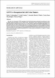 Our aim was to determine GSTT1 expression levels in left colon tumors and paired normal tissue in orderto identify specific alterations in GSTT1 mRNA levels. Alterations in GSTT1 expression in twenty-four leftsidedcolon tumors and paired cancer free tissue were determined by qRT-PCR. Significant fold changes weredetermined with t-test. When compared with cancer free tissue, left colon cancers showed a significant decreasein GSTT1 expression. However, GSTT1 mRNA levels among different grades increased gradually in correlationwith tumor grade. Our results suggest that downregulation of GSTT1 in left-sided colon cancers is an early eventand is reversed with cancer progression, probably due to cellular defense mechanisms as a response to changesin the microenvironment.