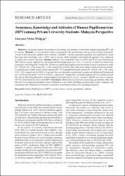 Awareness, Knowledge and Attitudes of Human Papillomavirus (HPV) among Private University Students- Malaysia Perspective