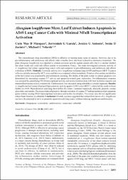 Alangium longiflorum Merr. Leaf Extract Induces Apoptosis in A549 Lung Cancer Cells with Minimal NFκB Transcriptional Activation