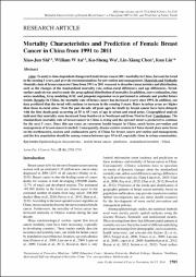 Mortality Characteristics and Prediction of Female Breast Cancer in China from 1991 to 2011