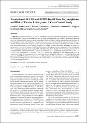 Objective: Uterine leiomyoma (UL) can be considered as the most common benign gynecological tumors of the smooth muscle cells in the myometrium. They are likely to be associated with infertility and recurrent abortion as well as obstructed labor and post-partum hemorrhage. Moreover, altered vascular-related genes can be linked to developing leiomyoma. Polymorphisms of the angiotensin-converting enzyme (ACE) gene are associated with some vascular diseases. The present study was carried out to investigate the association of ACE I/D and AGTR1 A1166C gene polymorphisms and the risk of uterine leiomyoma in a sample of Iranian population. Methods: The study was carried out on a total of 413 women divided into 202 patients with diagnosed uterine leiomyomas and a control group of 211. Genotyping was performed using the PCR or PCR-RFLP methods. Results: The ID and DD genotypes of ACE I/D polymorphism were associated with 2 and 2.9 fold higher risk of UL compared to II genotype (OR, 2 [95% CI, 1.3 to 3.2]; P = 0.004 and OR, 2.9 [95% CI, 1.6 to 5]; P = 0.0002). The frequencies of ACE D alleles were 53.7% in women with UL and 40.3% in controls, which were observed to be statistically different (P