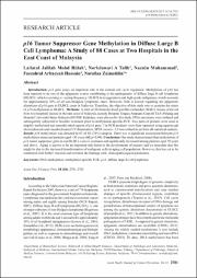 p16 Tumor Suppressor Gene Methylation in Diffuse Large B Cell Lymphoma: A Study of 88 Cases at Two Hospitals in the East Coast of Malaysia