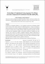 Cephalexin is an important antibiotic. It is very significant to determine an appropriate method for the extraction of this valuable antibiotic for industrial applications. Aiming at developing an efficient method for the extraction of cephalexin, the partitioning of cephalexin has been evaluated in aqueous two-phase system, including cholinium chloride and potassium phosphate. The effect of three main and independent variables on the partition coefficient of cephalexin has been estimated. These variables are as follows: equilibrium temperature, different weight percent of salt, and cholinium chloride. The results showed that by increasing the salt weight percent and the temperature, the partition coefficient of cephalexin will increase, while by increasing the weight percent of cholinium chloride, its partition coefficient will decrease.