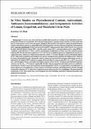 In Vitro Studies on Phytochemical Content, Antioxidant, Anticancer, Immunomodulatory, and Antigenotoxic Activities of Lemon, Grapefruit, and Mandarin Citrus Peels