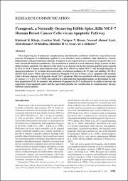 There is growing use of anticancer complementary and alternative medicines worldwide. Trigonella foenum graecum (Fenugreek) is traditionally applied to treat disorders such as diabetes, high cholesterol, wounds, inflammation, and gastrointestinal ailments. Fenugreek is also reported to have anticancer properties due to its active beneficial chemical constituents. The mechanism of action of several anticancer drugs is based on their ability to induce apoptosis. The objective of the study was to characterize the downstream apoptotic genes targeted by FCE in MCF-7 human immortalized breast cells. FCE effectively killed MCF-7 cells through induction of apoptosis,confirmed by terminal deoxynucleotidyl transferase-mediated dUTP nick end labeling (TUNEL) and RT-PCR assays. When cells were exposed to 50 μg/mL FCE for 24 hours, 23.2% apoptotic cells resulted, while a 48-hour exposure to 50 μg/mL caused 73.8% apoptosis. This was associated with increased expression of Caspase 3, 8, 9, p53, Fas, FADD, Bax and Bak in a time-and dose-dependent manner, as determined by real-time quantitative PCR. In summary, the induction of apoptosis by FCE is effected by its ability to increase the expression of pro-apoptotic genes and the spice holds promise for consideration in complementary therapy forbreast cancer patients.