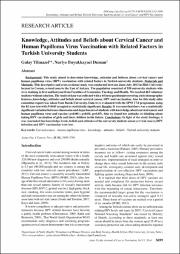 Knowledge, Attitudes and Beliefs about Cervical Cancer and Human Papilloma Virus Vaccination with Related Factors in Turkish University Students