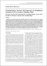 Transmembrane Protein 166 Expression in Esophageal Squamous Cell Carcinoma in Xinjiang, China