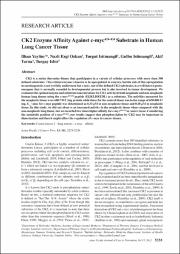 CK2 is a serine threonine kinase that participates in a variety of cellular processes with more than 300defined substrates. This critical enzyme is known to be upregulated in cancers, but the role of this upregulationin carcinogenesis is not yet fully understood but c-myc, one of the defined CK2 substrates, is a well-known protooncogenethat is normally essential in developmental process but is also involved in tumor development. Weevaluated the optimal enzyme and substrate concentrations for CK2 activity in both neoplastic and non-neoplastichuman lung tissues using the c-myc424-434 peptide (EQKLISEEDL) as a substrate. The activities measured forthe neoplastic tissue were 600-750 U/mg protein while those for the control tissue was in the range of 650-800 U/mg. Km value for c-myc peptide was determined as 0.33 μM in non-neoplastic tissue and 0.18 μM in neoplastictissue. In this study, we did not observe an increased activity in the neoplastic tissue when compared with thenon-neoplastic lung tissue, but we recorded two times higher affinity for c-myc424-434 in cancer tissue. Consideringthe metabolic position of c-myc424-434, our results suggest that phosphorylation by CK2 may be important indimerization and thus it might affect the regulation of c-myc in cancer tissues.