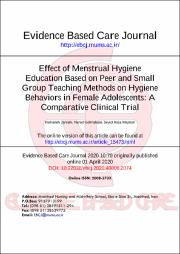 Menstrual hygiene education in adolescence is an important factor to prevent fertility problems. The present study aimed to compare the effect of menstrual hygiene education based on peer and small group teaching methods on hygiene behaviors in female adolescents. This randomized controlled clinical trial was performed on 90 high school students in 2018. Three high schools in Mashhad, Iran, were allocated to three groups by drawing lots. The peers and small groups were provided with educational content within a month and over four sessions, respectively. Moreover, the control group received routine education. The data were collected by a researcher-made questionnaire before and after the intervention and analyzed by SPSS software (version 16) using the analysis of variance, as well as Chi-square and Kruskal-Wallis tests. According to the Kruskal-Wallis test, the three groups were homogeneous regarding age (P=0.12). Furthermore, the mean scores of hygiene behaviors in the intervention groups (after the intervention) were significantly higher than in the control group (P