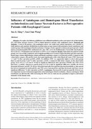 Influence of Autologous and Homologous Blood Transfusion on Interleukins and Tumor Necrosis Factor-α in Peri-operative Patients with Esophageal Cancer