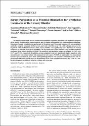 The objectives of this study were to examine serum periplakin expression in patients with urothelial carcinomaof the urinary bladder and in normal controls, and to examine relationships with clinicopathological findings.Detection of serum periplakin was performed in 50 patients and 30 normal controls with anti-periplakinantibodies using the automatic dot blot system, and a micro-dot blot array with a 256 solid-pin system. Levelsin patients with urothelial carcinoma of the urinary bladder were significantly lower than those in normalcontrols (0.31 and 5.68, respectively; p