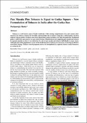Pan Masala Plus Tobacco is Equal to Gutka Square - New Formulation of Tobacco in India after the Gutka Ban