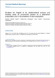 Erratum for Nagesh et al., phytochemical analysis and docking study of compounds present in a polyherbal preparation used in the treatment of dermatophytosis