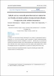 سالیسیلیک اسید به عنوان یک کاتالیزور اسید برونستد سبز و طبیعی برای سنتز سازگار با محیط زیست و سادهی دی هیدرو-2-اکسی پیرولهای چند استخلافی