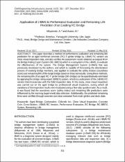 This paper describes a method of performance evaluation and remaining life prediction for an aged reinforced concrete (RC) T-girder bridge by J-BMS RC version via close visual inspection data, and also verifies the assessment results obtained as outputs from the Bridge Rating Expert System (RC-BREX) which is a subsystem of the J-BMS, to evaluate the effectiveness of the system. The Bridge Management System (J-BMS) that was previously developed by the authors, and which is capable of forecasting the deterioration process of existing bridge members, was applied to evaluate the safety indices (soundness score) and remaining life of the target bridge based on these test results. Using these methods, the remaining life of an aged RC-T girder bridge (SK-bridge) can be quantitatively estimated by applying the bridge rating expert (BREX) system, which is a subsystem of the J-BMS RC version that incorporates with the field inspection data. In this study, close visual inspection was carried out on the aged bridge by professional visual inspectors, during which all variations of the inspection results were evaluated using a five-step questionnaire. As a result, it was found that the soundness score (safety index) and remaining life predictions were influenced by the learning (supervised) data selection. Additionally, the predicted remaining lives were verified through concrete core tests extracted from main girders and deck slabs.