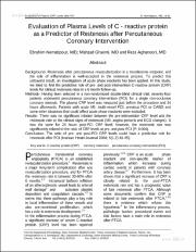 EVALUATION OF PLASMA LEVELS OF C-REACTIVE PROTEIN AS A PREDICTOR OF RESTENOSIS AFTER PERCUTANEOUS CORONARY INTERVENTION