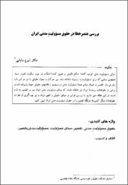 مبانی مسؤولیت مدنی توجیه کنندهء احکام قانونی و تعیین کنندهء احکام،در مورد سکوت قانون است. همچنین مبنایی که برای مسؤولیت به رسمیت شناخته شده سیر حرکت و تحول حقوقی را نیز در اینباره رقم میزند.تقصیر بهعنوان مبنای عمدهء مسؤولیت مدنب در بسیاری از نظامهای حقوقی جهان پذیرفته شده و برخی از حقوقدانان برجستهء ایران نیز اعتقاد دارند،که مبنای مسؤولیت مدنی ایران نیز بر تقصیر بنا شده است.در این مقاله سعی داریم،با بررسی قوانین و سوابق حقوقی و فقهی ایران و نیز بهرهگیری از نظرات حقوقدانان دیگر کشورها جایگاه تقصیر را در حقوق مسؤولیت مدنی ایران تبیین کنیم.