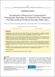Quantitative 3-dimensional Computerized Tomography Modeling of Isolated Greater Tuberosity Fractures with and without Shoulder Dislocation